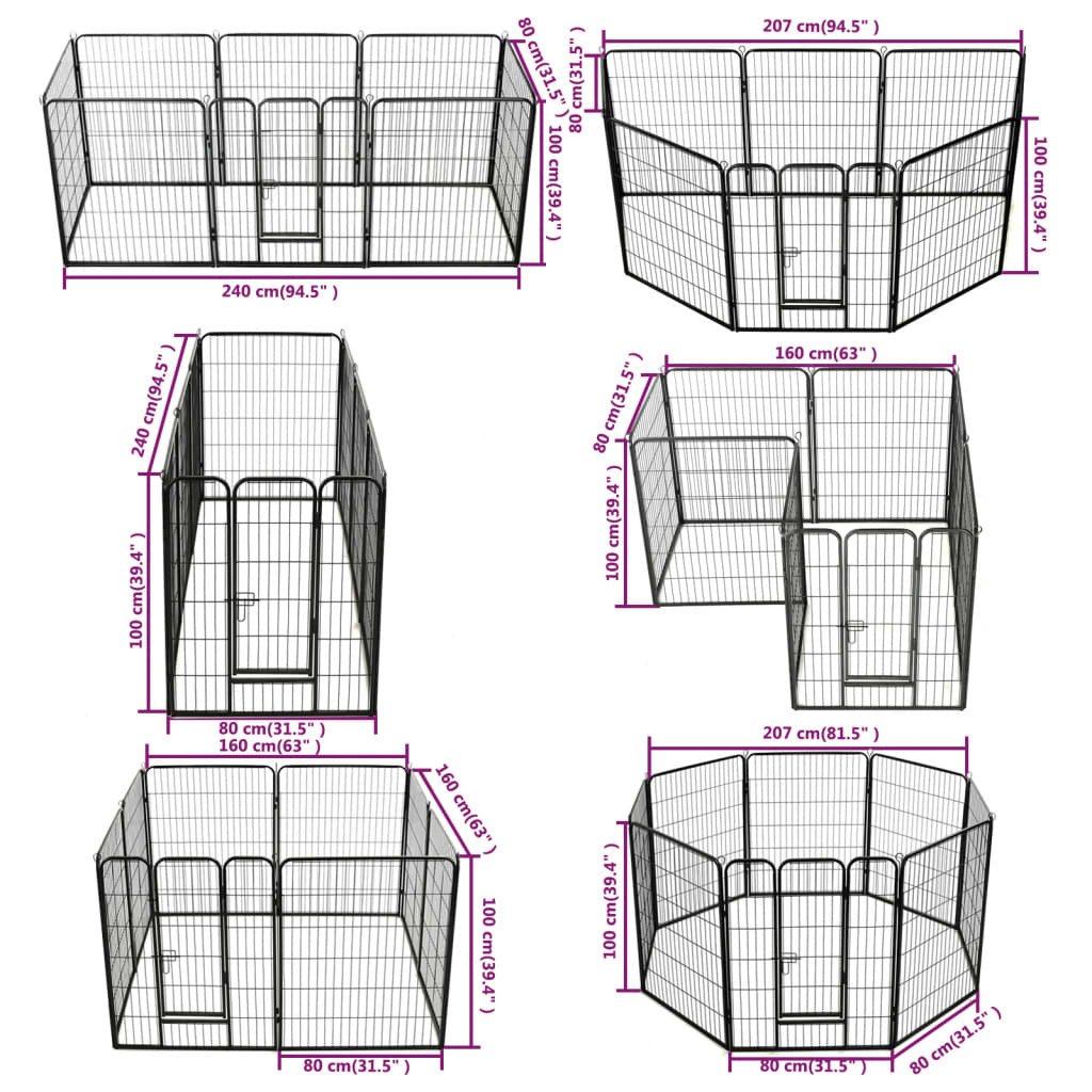Dog Playpen 8 Panels Steel 31.5"x39.4" Black