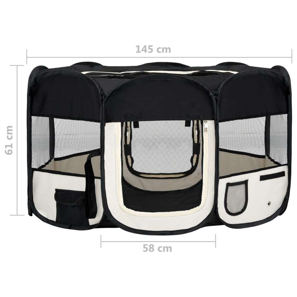 Foldable Dog Playpen with Carrying Bag Black 57.1"x57.1"x24"